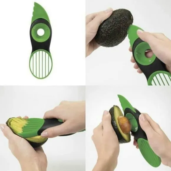 Multifunktionell kniv för att skära avokadon på mitten. Ta bort avokadons kärna med ett handgrepp. Skär avokadon i kuber för en vacker avocadosallad. Mosa kuberna för att göra en fin hemlagad guacamole. Snygg design och m.