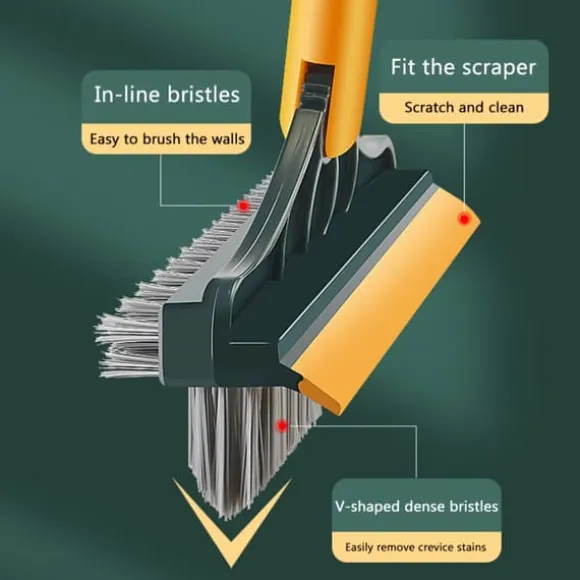 1、【3-i-1 borste och skrapa】 Den långskaftade slipborsten kan användas på baksidan av skrapan för att skura avloppsvattnet efter att ha sopat golvet. Torka och borsta golvet samtidigt, rengör och torka med bara en duk! Få din städning gjord snabbt.