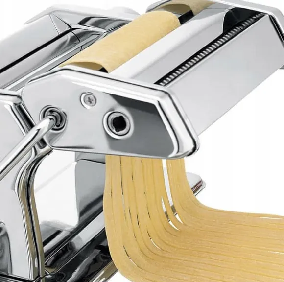 Pasta degmaskin, lasagnetrådar 3in1 Maskinen lämpar sig för att förbereda: olika typer av pastadegar för dumplings spaghetti lasagne kan även användas för malning: tobak, kaffe, nötter, örter FÖRDELAR solid konstruktion av tjockt rostfritt stål lätt att underhålla stabilt, bred botten utrustad med halkfria gummifötter lättanvända maskinhållare med rullhållare för INCLUDES bänkhållare för d material: rostfritt stål har två skärbredder: ~ 7 mm och ~ 2 mm har en ratt för justering av 9 olika degtjocklekar.