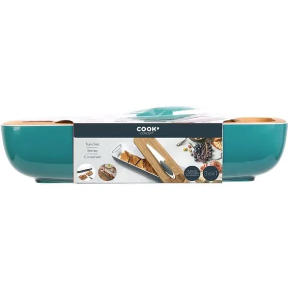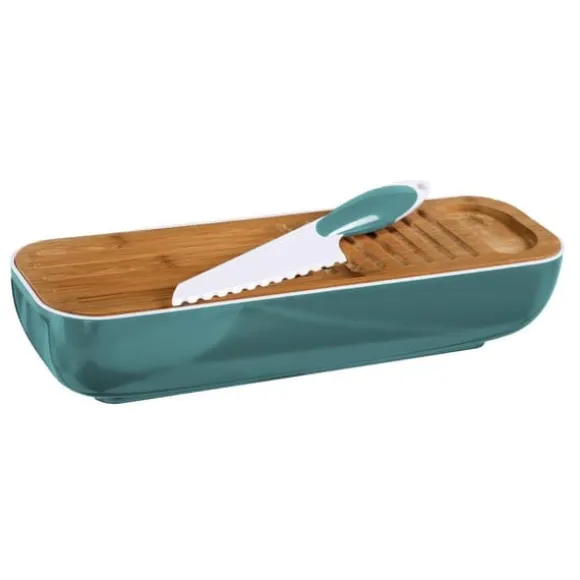 Tack vare det,måltidsberedningen blir snabbare och mer effektivoch ditt kök blir merorganiserad.Brödbehållaren med inskriptionen är inte barapraktisk lösningmen också ett vackert tillskott till ditt kök.Styrelsen, som också fungerar som lock, är gjord avbambu, vilket garanterarhållbarhet och elegans. Det speciellakniv gör att skära och hacka mat lättare.