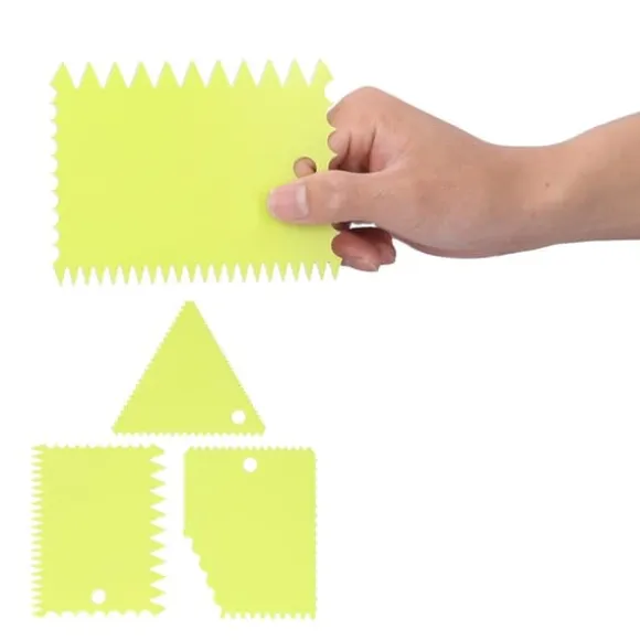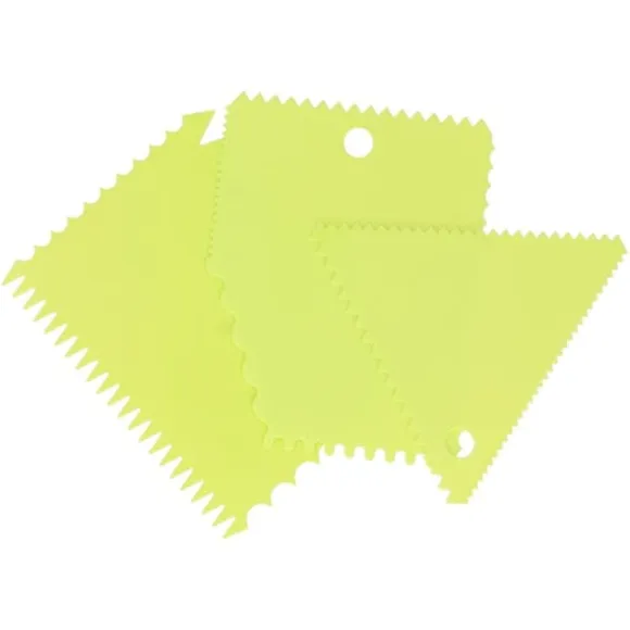 Välkommen till vår butik! Denna gräddskrapa är ett enkelt och lättanvänt verktyg som ger en vacker dekorativ effekt på dina kakor. Den är lätt och kompakt, vilket gör den bekväm att förvara i köket utan att ta upp för mycket plats. Detta mångsidiga verktyg är lämpligt för att skrapa, skyffla och arbeta med olika livsmedel som grädde, kakor, ost, choklad, deg, bröd, pizza, smet och frosting. Tillverkad av hållbar, livsmedelsgodkänd plast är den giftfri, stark, flexibel, återanvändbar och byggd för att hålla. Rengöringen är enkel eftersom den tål maskindisk; diska bara med tvålvatten före första användningen. Det elastiska materialet ger en bekväm känsla och är motståndskraftigt mot skador. Med olika och nya stilar och former erbjuder detta verktyg den kreativitet du önskar för dina bakprojekt. Du får 3 gräddskrapor, som vardera mäter cirka 9,5 cm, 12 cm eller 12 cm och väger cirka 28 g. Nöjdhet: Våra kunder är vår högsta prioritet. Om du upptäcker några produktproblem efter att du mottagit varorna, såsom skador eller felaktig mängd varor, vänligen kontakta säljaren omedelbart. Vi gör vårt bästa för att ge dig tillfredsställande kundservice.
