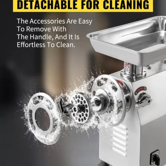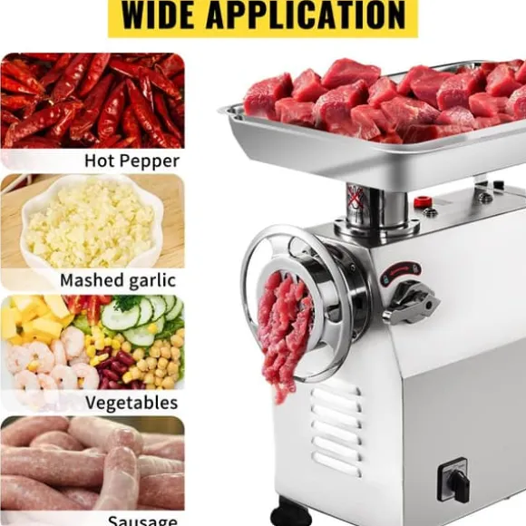 En fantastisk köttkvarn och korvmaskin. Hela kroppen är gjord av rostfritt stål. Den använder 1100W all koppar, snurrar vid 170 rpm och ger 770 lbs/h. Denna elektriska köttkvarn är idealisk för köttberedare (hjortkött, kyckling, fläsk, etc.). Den är perfekt för malning av mat på restauranger, stormarknader, snabbmatsrestauranger, slaktare och mer.