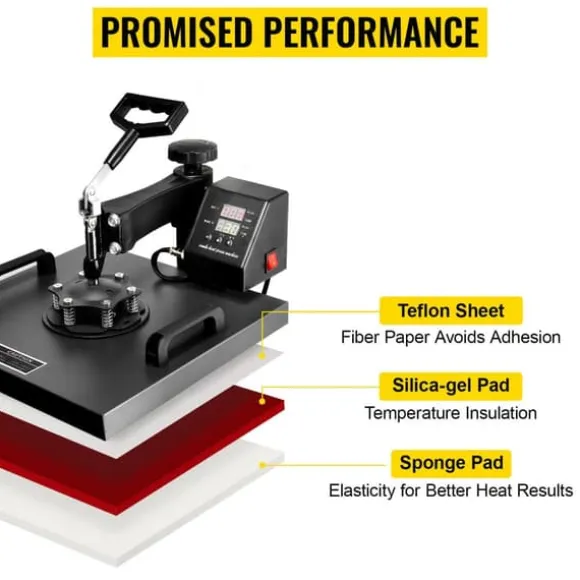 15 x 15 tums värmepress, snabb uppvärmning, mångsidig och effektiv överföring.