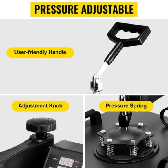 -360° svängarm: Denna svängmaskin kan rotera 360 grader smidigt. Det utrustade halksäkra gummigreppet ger dig också en bekväm användarupplevelse. Justera helt enkelt dynan tätt till materialet för att ge utmärkt uppvärmning.