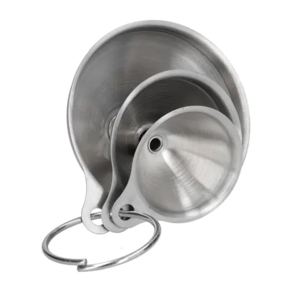 2, Flaskfyllningstratt: Varje tratt har en mycket smal stång, som är perfekt för att fylla små flaskor och behållare samtidigt som köksbänken läcker fri.