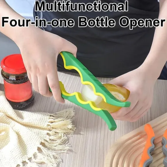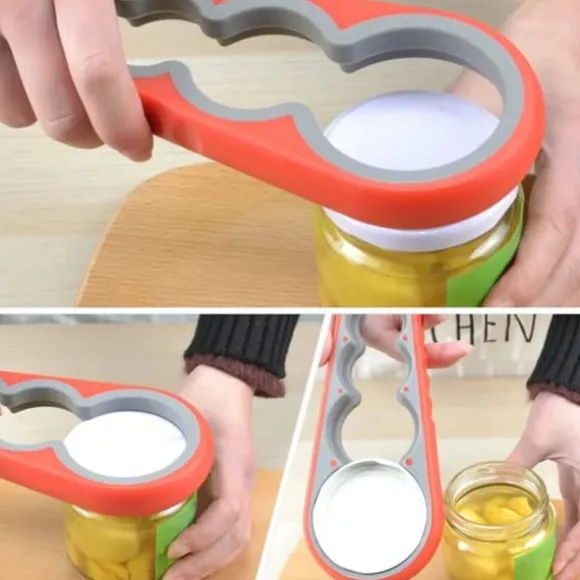 Har du någonsin kämpat med att öppna en envis burk eller ett hårt skruvlock? Vi har lösningen för dig! Vår 4-i-1 Burköppnare är det perfekta hjälpmedlet för alla dina öppningsbehov i köket. En smart lösning för burkar, skruvlock, konserver och flaskor!