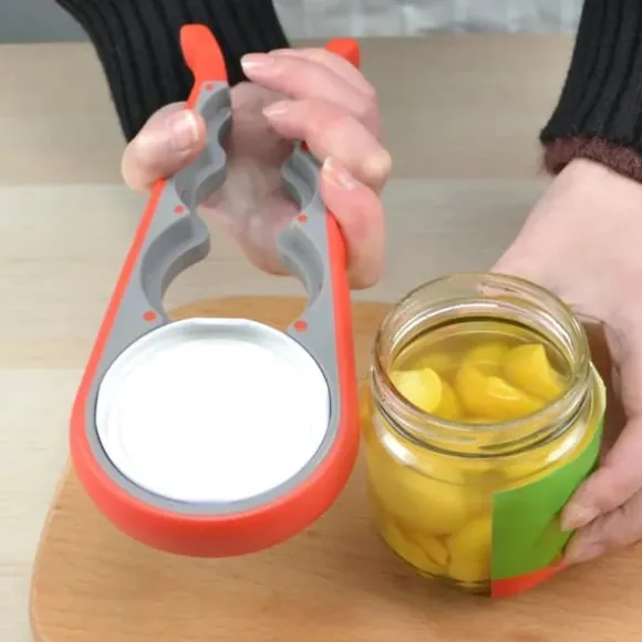 - Mångsidig användning: Den här praktiska burköppnaren klarar allt från burkar och konserver till flaskor och skruvlock. En riktig allt-i-ett-lösning!