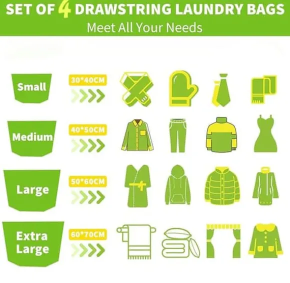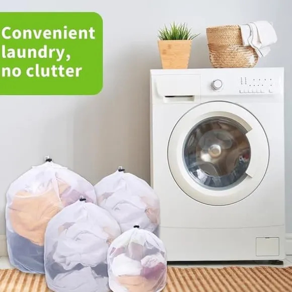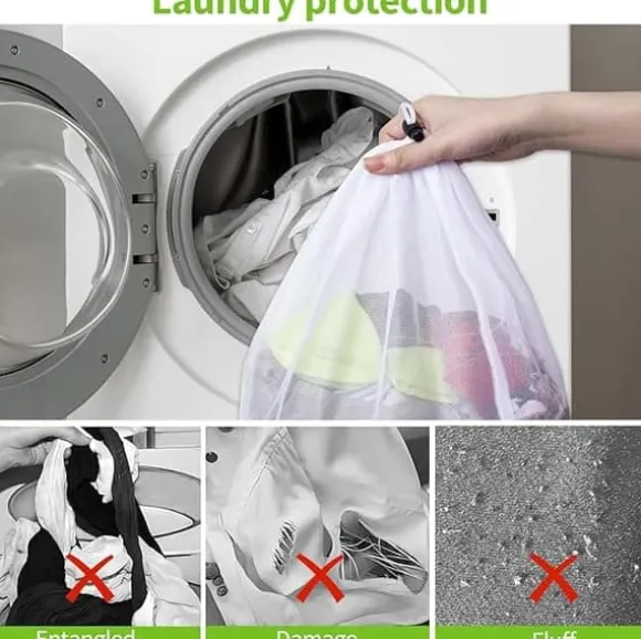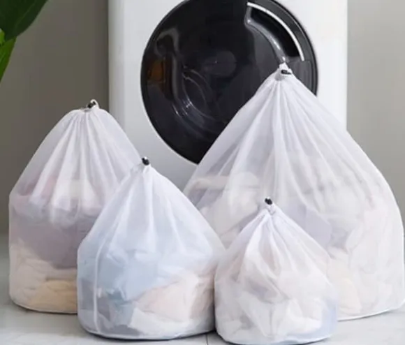 4-packTvättpåsar med fint nät ,Tvättpåse med snörstoppare , Vit