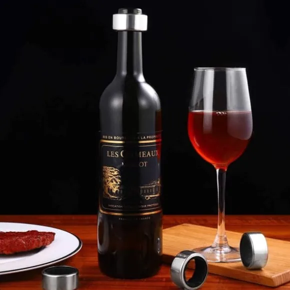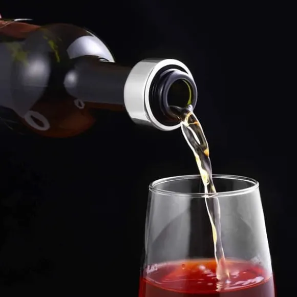 Dessa små flaskhållare sitter tätt runt flaskan, förhindrar dropp och håller flaskan på plats under hällning. De förhindrar att vin droppar på etiketten och skyddar dukar, köks- och barbänkskivor och mattor från rödvinsfläckar.