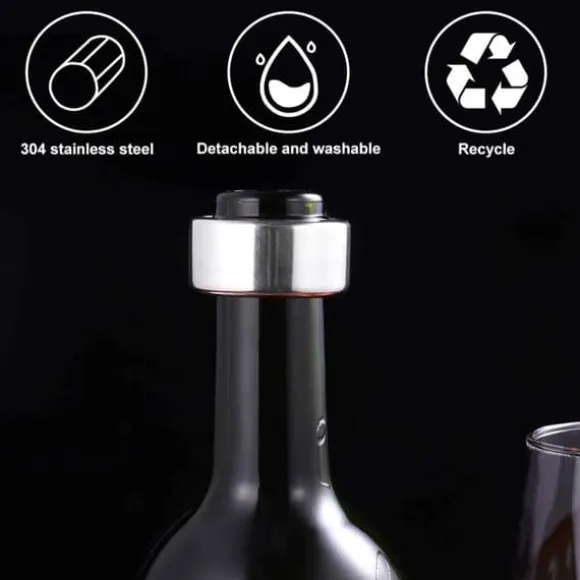 Denna metallring är tillverkad av slitstarkt rostfritt stål och fångar upp vindroppar direkt från flaskans hals. Denna vindroppring i rostfritt stål är både vacker och praktisk.