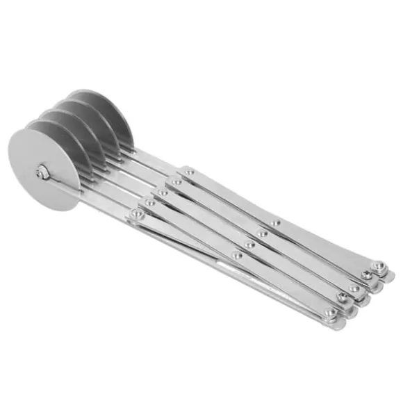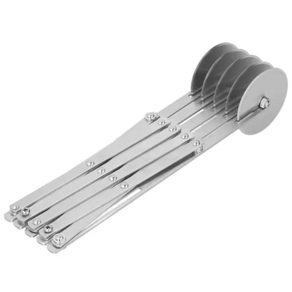 För att säkerställa exakt och konsekvent skärning har den expanderbara flerhjulsskäraren en låsanordning som kan säkras genom att dra åt muttern i mitten av den justerbara armen. Den är bärbar, lätt och lätt att använda, vilket ger en bekväm och säker klippupplevelse utan att skada dina händer. Denna fräs är lämplig för användning i kök, restauranger, hotell och alla typer av fester.