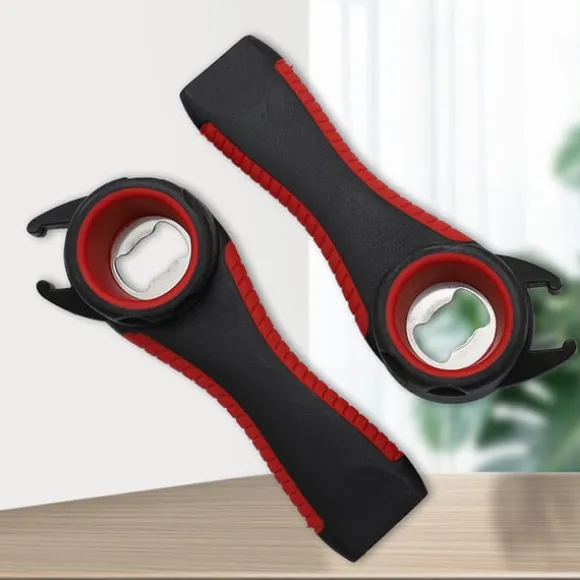 Mångsidig funktionalitet: Denna multifunktionsöppnare kombinerar fem viktiga funktioner: flasköppnare, burköppnare, läsköppnare, räkor, och burköppnare, som tillgodoser alla dina behov i köket och utomhus.