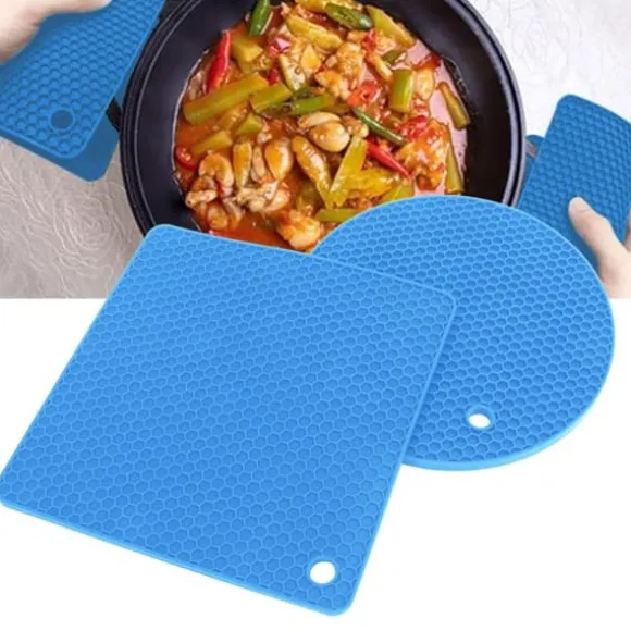 Välkommen till vår butik! Detta set innehåller högkvalitativa silikonkökstillbehör designade för hållbarhet och mångsidighet. Varje förpackning innehåller: – 2 x Runda silikondynor (180 x 7 mm / 7 x 0,3 tum) – 3 x Fyrkantiga silikondynor (185 x 5 mm / 7,3 x 0,2 tum) Totalvikt: 403 g / 14,2 oz **Funktioner:** – **Premiummaterial:** Tillverkad av livsmedelsklassad silikon, BPA-fri och säker för ugnar, mikrovågsugnar, diskmaskiner och kylskåp. – **Värmebeständig:** Tål temperaturer från -40 °C till 230 °C och skyddar ytor från varma grytor, stekpannor och tallrikar. – **Halkfri och hållbar:** Starkt grepp förhindrar glidning, medan det flexibla materialet motstår rost, sprickor och flisor. – **Mångsidig användning:** Perfekt som grytställ, torkunderlägg, skedhållare eller underlägg. – **Enkelt underhåll:** Bikakedesignen absorberar fukt och silikonkuddarna kan skakas eller rullas för att torka snabbt. Tål hand- eller diskmaskin. Nöjdhet: Våra kunder är vår högsta prioritet. Om du upptäcker några produktproblem efter att du mottagit varorna, såsom skador eller felaktig mängd varor, vänligen kontakta säljaren omedelbart. Vi gör vårt bästa för att ge dig tillfredsställande kundservice.