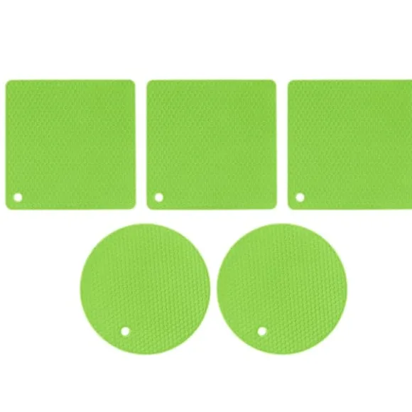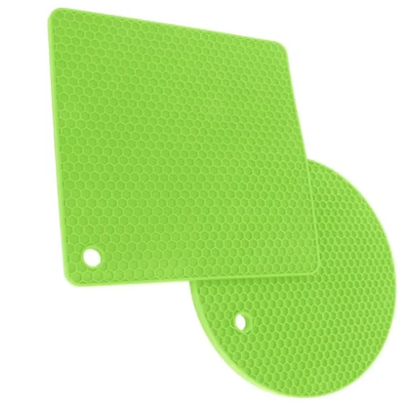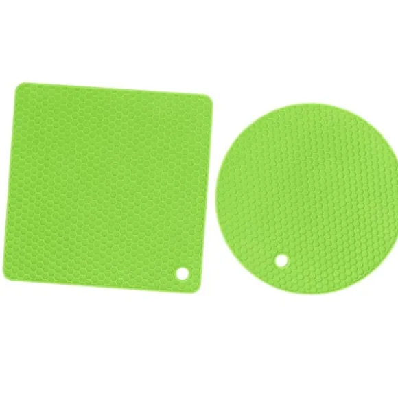 Välkommen till vår butik! Detta set innehåller högkvalitativa silikonkökstillbehör designade för mångsidighet och hållbarhet. Varje förpackning innehåller 5 silikondynor (2 runda och 3 fyrkantiga) för pålitligt värmeskydd och daglig användning. **Produktinformation:** – **Material:** Livsmedelsklassad silikon, BPA-fri, giftfri och säker för matlagning. – **Värmebeständighet:** Tål temperaturer från -40°C till 230°C och skyddar ytor från heta grytor, stekpannor och tallrikar. – **Halkfritt grepp:** Säkerställer stabilitet och förhindrar oavsiktligt spill eller halkning. – **Mångsidig användning:** Perfekt som grytställ, torkdynor, skedhållare eller underlägg. – **Enkelt underhåll:** Handdiskas eller diskmaskinssäker; snabbtorkande bikakedesign motstår fuktuppbyggnad. – **Kompakt förvaring:** Kan rullas ihop eller hängas för platsbesparande bekvämlighet. **Mått och vikt:** – **Kvadratisk storlek:** 185 x 5 mm / 7,3 x 0,2 tum – **Rund storlek:** 180 x 7 mm / 7 x 0,3 tum – **Vikt:** 403 g / 14,2 oz Nöjdhet: Våra kunder är vår högsta prioritet. Om du upptäcker några produktproblem efter att du mottagit varorna, såsom skador eller felaktig mängd varor, vänligen kontakta säljaren omedelbart. Vi gör vårt bästa för att ge dig tillfredsställande kundservice.