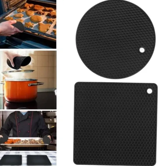 Välkommen till vår butik! Detta set innehåller 5 högkvalitativa silikonkuddar designade för mångsidig användning i köket. Varje förpackning innehåller: – 2 x Runda silikonkuddar (180 x 7 mm) – 3 x Fyrkantiga silikonkuddar (185 x 5 mm) Totalvikt: 403 g **Funktioner:** – **Premiummaterial:** Tillverkad av livsmedelsklassad silikon, BPA-fri och säker för ugnar, mikrovågsugnar, diskmaskiner och kylskåp. – **Värmebeständig:** Tål temperaturer från -40 °C till 230 °C och skyddar ytor från varma grytor, stekpannor och tallrikar. – **Halkfri och hållbar:** Starkt grepp förhindrar glidning, medan det flexibla, rostfria materialet säkerställer långvarig användning. – **Multifunktionell:** Perfekt som grytställ, torkunderlägg, skedhållare eller underlägg. – **Enkelt underhåll:** Bikakedesignen absorberar fukt och dynorna kan handdiskas eller diskas i diskmaskin. Nöjdhet: Våra kunder är vår högsta prioritet. Om du upptäcker några produktproblem efter att du mottagit varorna, såsom skador eller felaktig mängd varor, vänligen kontakta säljaren omedelbart. Vi gör vårt bästa för att ge dig tillfredsställande kundservice.