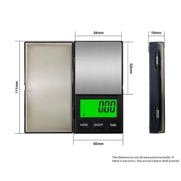Bärbar och kompakt: Denna digitala våg med hög precision är liten i storlek, vilket gör den lätt att bära i fickan eller väskan för användning på språng