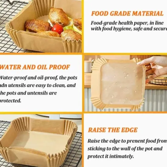 Efter användning slänger du pappersformen, och du slipper disk! Med dessa papper blir din airfryer inte längre smutsig och flottig efter användning. Formarna är oljesäkra, vattentäta samt av non-stick material, lämpliga till all typ av matlagning i airfryer och ugn.