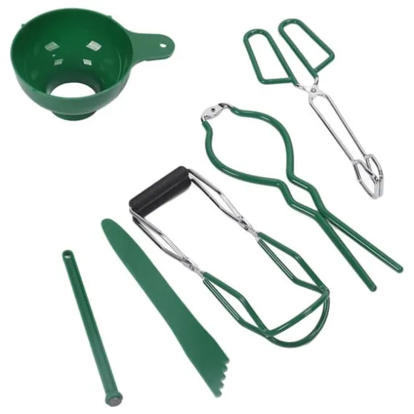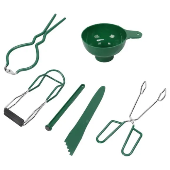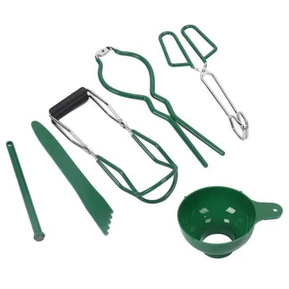 Välkommen till vår butik! Detta kompletta konserveringskit innehåller allt du behöver för säker och effektiv konservering och sylttillverkning i hemmet. Setet innehåller 1 burknyckel, 1 burklyftare, 1 konserveringstång, 1 konserveringstratt, 1 bubbelpoppare och 1 magnetisk locklyftare. Verktygen är tillverkade av slitstarkt rostfritt stål, PP och TPR-material och är byggda för att hålla länge och enkla att rengöra. Burklyftaren och den magnetiska locklyftaren ger säker hantering, så att du säkert kan lyfta varma burkar från kokande vatten utan att halka eller riskera brännskador. Tratten hjälper dig att hälla ingredienserna snyggt i burkar, medan bubbelpopparen tar bort instängd luft för att säkerställa korrekt tätning. Perfekt för att göra och konservera sylt, såser och andra konserver. Hela kittet väger cirka 527 g (18,6 oz). Nöjdhet: Våra kunder är vår högsta prioritet. Om du upptäcker några produktproblem efter att du mottagit varorna, såsom skador och felaktig mängd varor, vänligen kontakta säljaren omedelbart. Vi gör vårt bästa för att ge dig tillfredsställande kundservice.