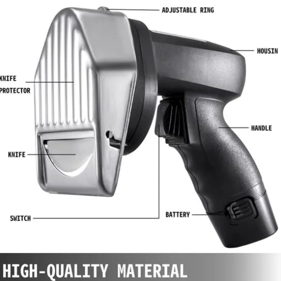 Denna gyrokniv har ultrahögkvalitativa 420 rostfria blad för snabb skärning. Det lätta plastskalet har en halkskyddsdesign.