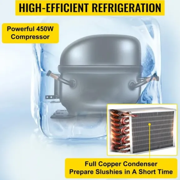 -6L/1,6 Gal slushmaskin: Denna frysta slushmaskin har en tankkapacitet på 6 L/1,6 US gallon, som rymmer mycket slask och drycker och kan användas för olika smaker. Plus, 450W effektklassificering gör att du kan ha din smoothie klar på en bråkdel av tiden.