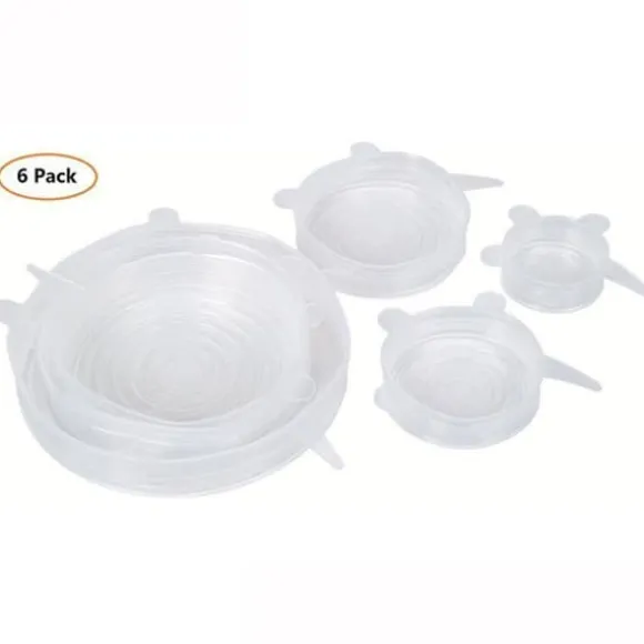 6 st/set Silikon Köksfrukt Färsk matsparande överdrag Disklock Mikrovågssäker Beskrivning: 6 st/set fräscht silikonöverdrag tillverkat av starkare material som inte slits av eller glider av. Trots den tjocka konstruktionen sträcker de sig bättre och ger ett stadigt, läckagesäkert sugskydd. Packade med elasticitet, dessa saker kan expandera för att passa från