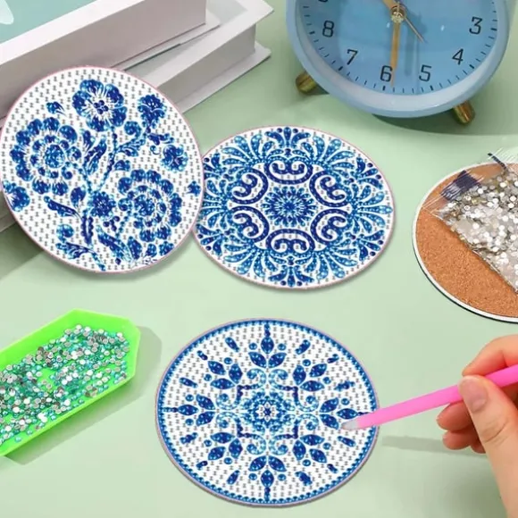 Komplett Set: Detta 8-delars set inkluderar glasunderlägg, färgade diamanter, en punktapplikator, en bricka och klisterlera, vilket gör det till ett komplett DIY-kit. Setet är kompatibelt med hemmabruk och festdekorationer, vilket ger både kreativt nöje och praktisk användning.