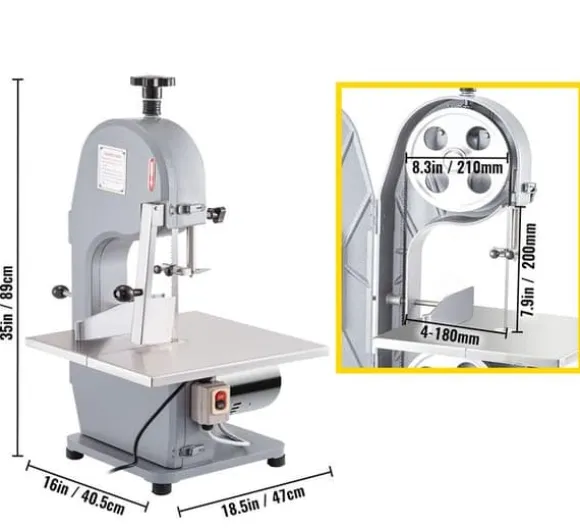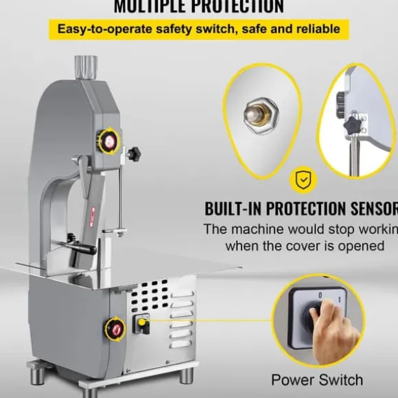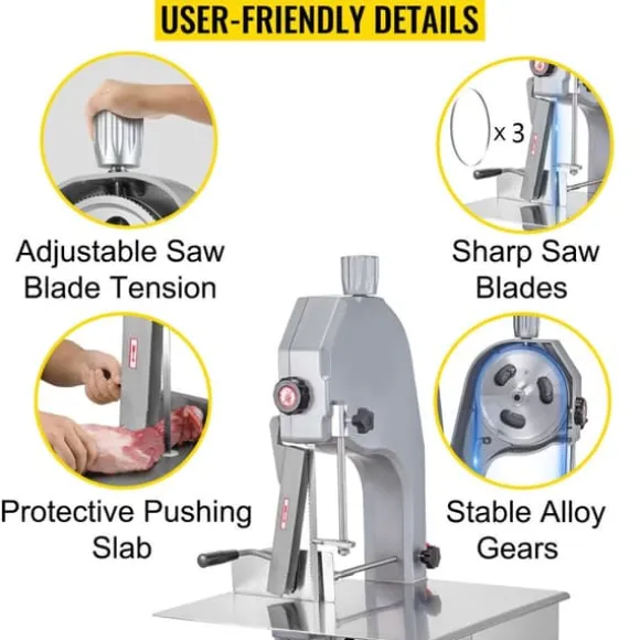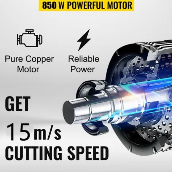850W 15m/s kommersiell benskärningsmaskin med 3 sågblad, rymlig arbetsbänk med skala, pålitliga skydd, användarvänliga detaljer