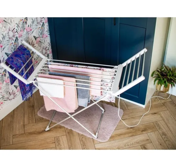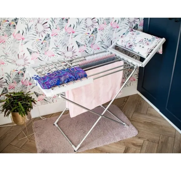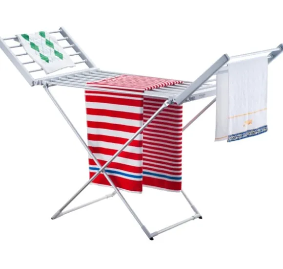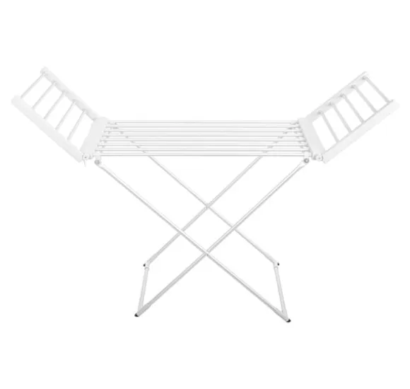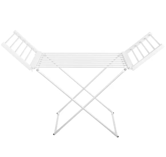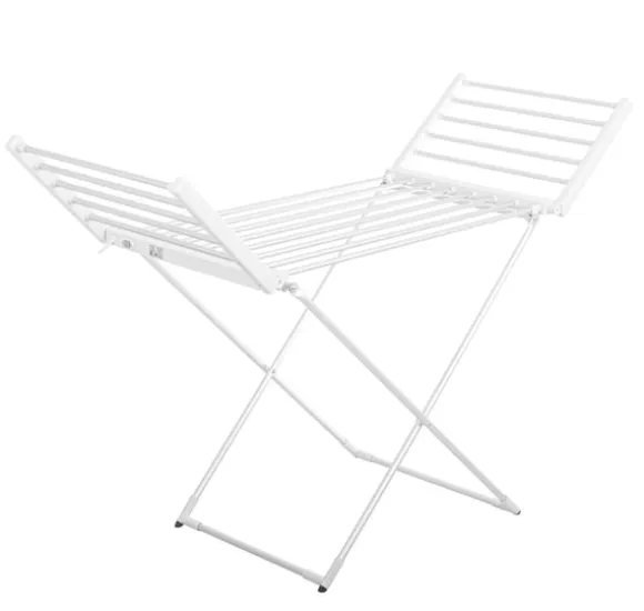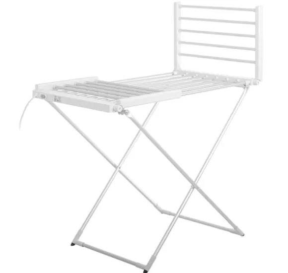 Övriga egenskaper: Mått utfällt: 148 x 52,5 x 90 cm; Vikta mått: 113 x 52,5 x 8 cm; Värmeelementet är en elektrisk värmare inbyggd i alla rör; Plastfötter för att skydda golvet; Minskar torktiden jämfört med traditionell metod; Nätsladdslängd: 2m
