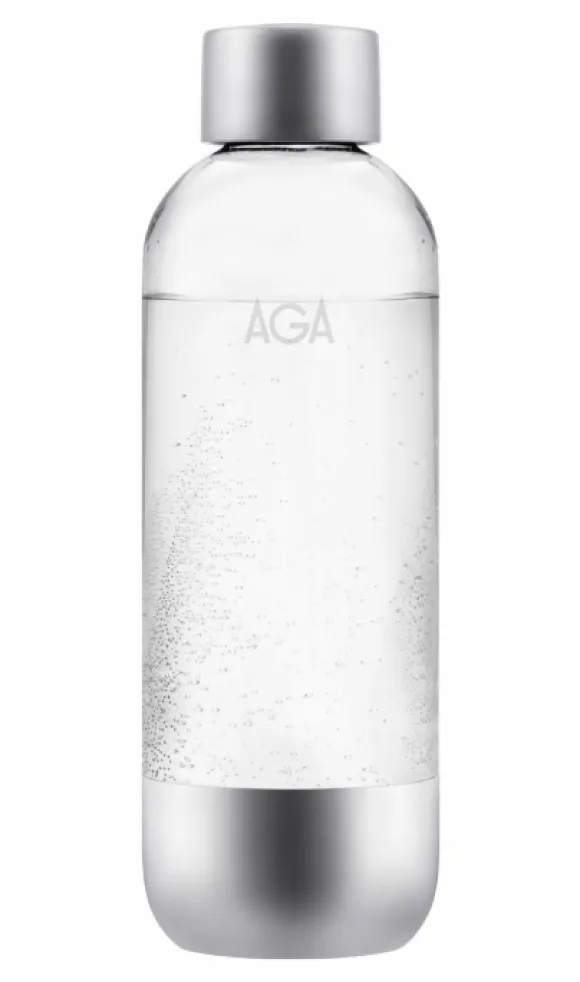 PET-flaska (1 liter), som med sitt tätslutande lock ser till att drycken hålls kolsyrad längre tid. Kompatibel med WasserMaxx och AGA kolsyremaskiner.