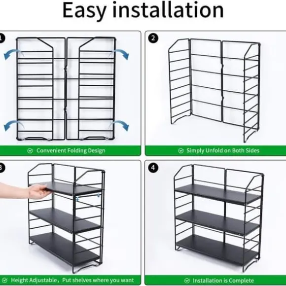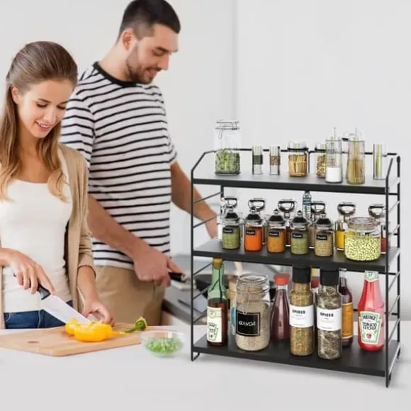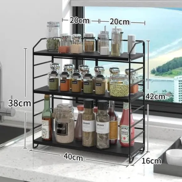 Mer mer! Den här 3-nivå, vikbara kryddhyllan erbjuder extra hyllor och en lösning för att använda utrymmet; hjälper till att rensa bort oordning och hålla saker organiserade; den sparar utrymme och gör rengöring av din arbetsyta mycket enklare och mer effektiv. — Vattentålig och rostbeständig förvaringshylla är