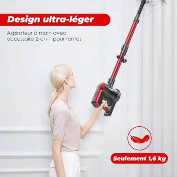 Den 3:e generationens borstlösa BLDC-motor på 450 W erbjuder ett sugkraft på upp till 45 000 Pa, vilket garanterar djupgående rengöring genom att enkelt lyfta damm, skräp och husdjurshår från olika ytor – mattor, trägolv eller kakelgolv. Utrustad med ett integrerat lithiumbatteri med 8 celler, fungerar denna enhet i upp till 60 minuter i ECO-läget, 25 minuter i normalt läge och 10 minuter i Max-läget. Den laddas helt på endast 4 till 5 timmar, vilket är idealiskt för effektiv rengöring av hela hemmet. Med en vikt på bara 2,15 kg är det den lättaste högpresterande trådlösa dammsugaren på marknaden. Utrustad med en motoriserad turbo-borste utan sammanflätning (Tangle Free) och gröna LED-lampor som guidar dig enkelt för att upptäcka smuts och skräp. Inkluderar en väggfäste och levereras med ett extra HEPA-filter kostnadsfritt.