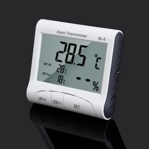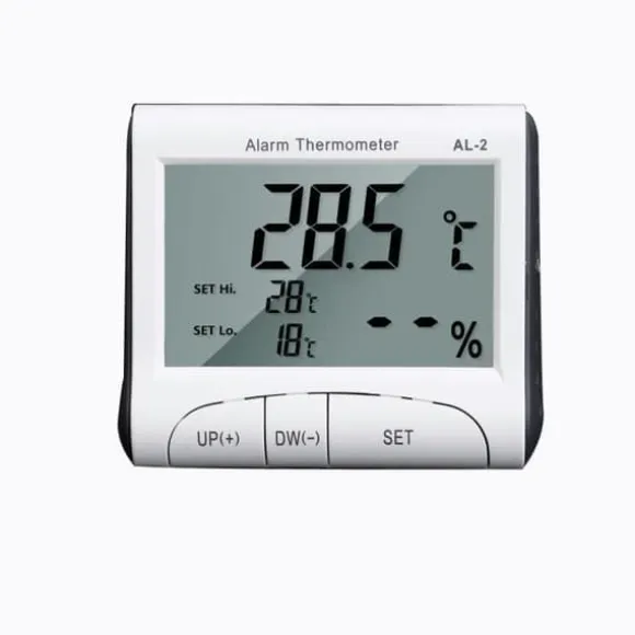 AL-2 LCD Digital Temperatur Hygrometer Klocka Termometer Alarm Hygrometer Funktioner: Helt ny och hög kvalitet. Kompakt och bärbar LCD-skärm Visar temperatur, luftfuktighet och tid samtidigt med låg strömförbrukning och hög stabilitet Noggrannhet Temperaturområde: -40℃ ~ +120℃ (-40℉ ~ +248℉) Temperaturhastighet luftfuktighet: inomhus 20% ~ 95% relativ fuktighet (När fuktighet
