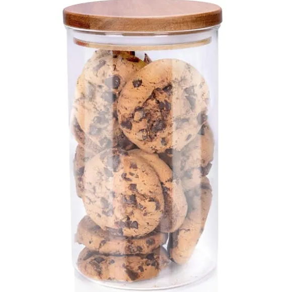 Det praktiska trälocket ger inte bara ett tilltalande utseende utan även en tät och säker förslutning. Du kan förvara allt från kakor och flingor till olika ingredienser och övriga kökstillbehör med lätthet. Trälocket bidrar också till att bevara innehållet färskt och skyddat från fukt och luft.