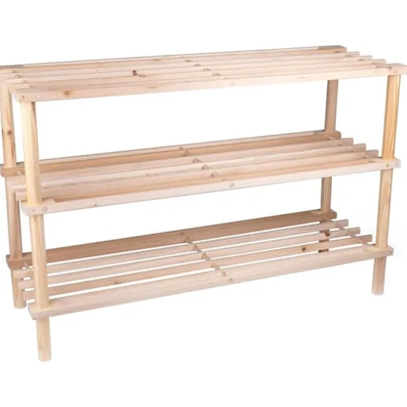 Nu slipper du ha hallgolvet fullt med skor. Nu finns det en smart förvaringslösning: Alpina Skoställ. Detta ställ i trä har 3 plan med plats för minst 10 par skor. Tack vare trämaterialet och dess ljusa färg passar skostället perfekt in i moderna och ser till att din hall förblir städad och snubbelfri.