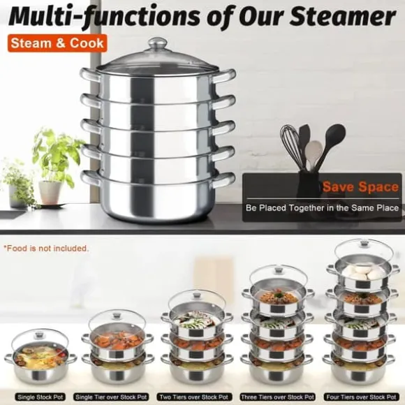 Effektiv matlagning i flera våningarMed fem stapelbara insatser kan du tillaga upp till fem komponenter samtidigt – perfekt för tidsbesparande och koordinerad matlagning. Nivåerna tas enkelt av för att anpassa volymen.