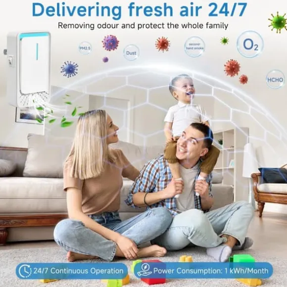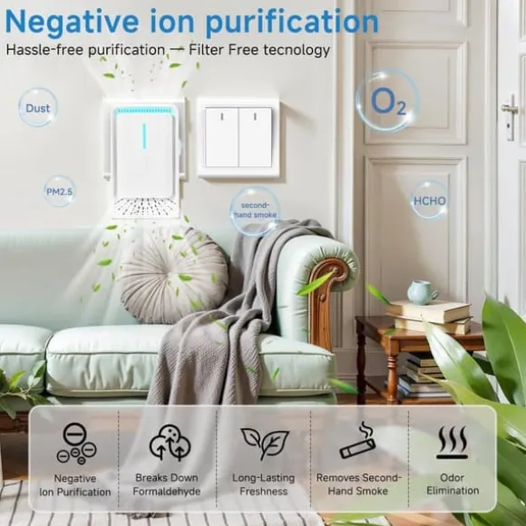 Anslut bara luftrenaren direkt i ett vanligt vägguttag – inga komplicerade inställningar eller installation krävs. Den säkra, hållbara och energisnåla designen låter dig använda den kontinuerligt utan