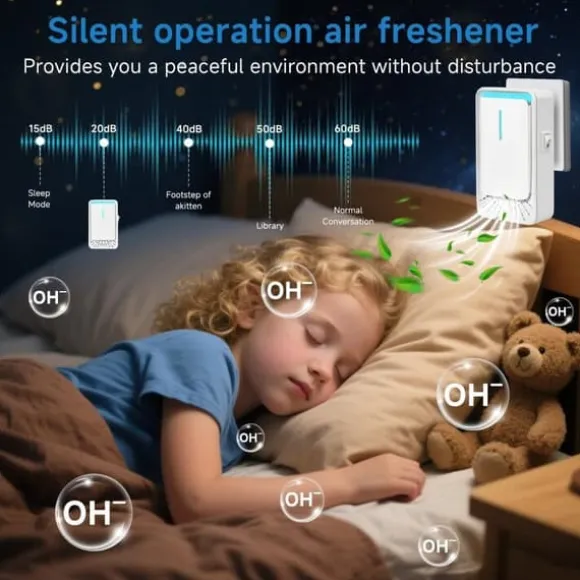 Med sin helt ljudlösa design kan denna insticksluftrenare arbeta dygnet runt utan att störa din vardag eller sömn. Idealisk för användning i sovrum, kontor eller andra känsliga utrymmen där tystnad är av största