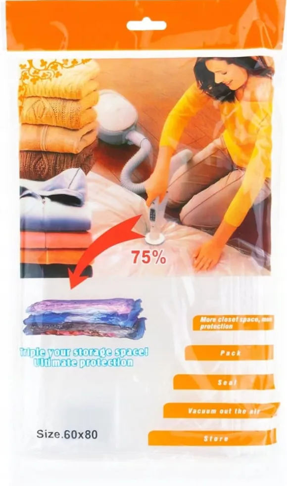 Vakuumpåse Återanvändbar påse Vakuumfilm för kläder och sängkläder 80×100 Platsbesparande och effektivt skydd✅Upp till 80 % mer utrymmeVakuumpåsen minskar volymen av förvarade föremål, perfekt för små utrymmen.✅Effektivt skyddSkyddar kläder, sängkläder och andra textilier från damm, fukt, vatten och mal.✅ÅteranvändbarSolid förslutning och slitstarkt material möjliggör upprepad användning. ✔️ Platsbesparande ✔️ Effektivt skydd ✔️ Återanvändbar ✔️ Snabb och enkel att använda Hur fungerar en vakuumpåse? ➡️ Lägg saker i påsen – Det kan vara kläder, sängkläder, filtar, kuddar eller handdukar. ➡️ Stäng påsen med en dragkedja – En tät försegling ger långvarigt skydd. ➡️ Luftsug – Använd en dammsugare för att suga ut luften, stäng sedan ventilen. ➡️ Klar! – Sakerna är komprimerade, skyddade och redo för förvaring. ❇️ Detta är viktigt! Svara på 3 frågor för att ta reda på det! ➡️ Kämpar du med platsbrist i din garderob? En vakuumpåse sparar upp till 80 % utrymme. ➡️ Vill du skydda kläder och sängkläder från fukt? En tät försegling skyddar textilier från damm, vatten och mal. ➡️ Behöver du en praktisk förvaringslösning? Tack vare sin solida konstruktion är påsen lämplig för upprepad användning. ✔️ Volymreducering ✔️ Fuktskydd ✔️ Perfekt för resor och hemmet ✔️ Hög kvalitet Hur använder man en vakuumpåse bäst? ✔️ Garderobsorganisation – Perfekt för förvaring av säsongskläder och sängkläder. ✔️ Resor – Gör att du kan packa fler saker i resväskan utan att ta upp extra plats. ✔️ Förvaring i källare och garage – Skyddar textilier från fukt och smuts. Tekniska specifikationer Mått: 80 x 100 cm Material: Slitstark vakuumfolie Stängning: Dragkedja + luftsugventil Avsedd användning: Kläder, sängkläder, filtar, kuddar Användning: Återanvändbar ⬇️ Vanliga frågor ❓F: Kan påsen användas flera gånger?➡️ Ja, den är hållbar och designad för återanvändbar användning.F: Passar påsen alla dammsugare?➡️ Ja, ventilen är universell och passar de flesta dammsugarmodeller.F: Kan man förvara sängkläder i den?➡️ Ja, påsen är idealisk för sängkläder, filtar, kuddar och kläder.F: Återgår saker till sin ursprungliga form efter att de tagits ur påsen?➡️ Ja, kläder och textilier återfår sin volym efter några minuter.F: Kan påsarna användas för förvaring i källaren?➡️ Ja, de skyddar saker från fukt och damm, vilket gör dem lämpliga för källare och vindar.