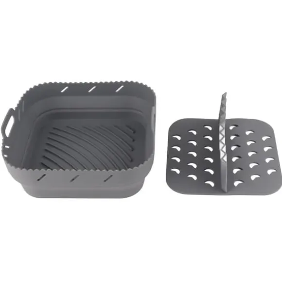 – Material: Silikon – Produktfärg: Grå, Svart, Rosa, Blå, Röd – Produktstorlek: Air Fryer Pan: 20 x 6,5 cm, avdelare: 17 x 5 cm – Produktvikt: 175g + 85g Paketet innehåller: