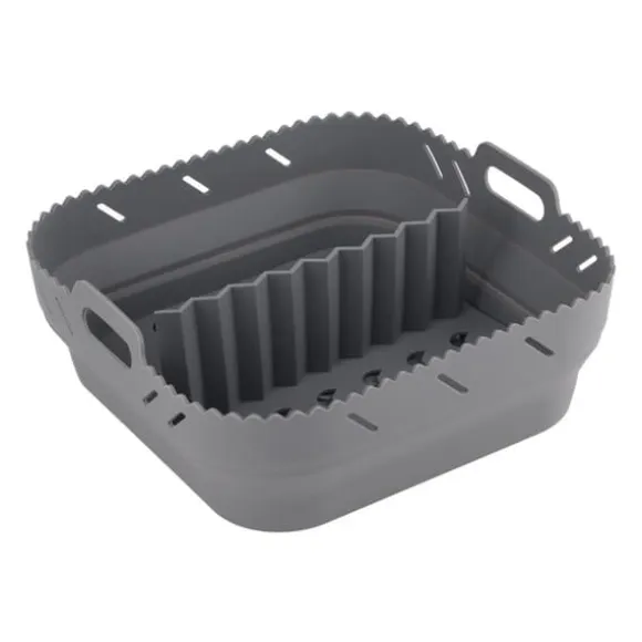 Den rektangulära luftfritösen i silikon kommer med två handtag för att skydda händerna från brännskador och gör det enkelt att överföra mat till tallrikar eller skålar. De upphöjda linjerna på luftfriteringsdynan hjälper till att förbättra värmecirkulationen, vilket säkerställer att din mat blir jämnt tillagad och utsökt.