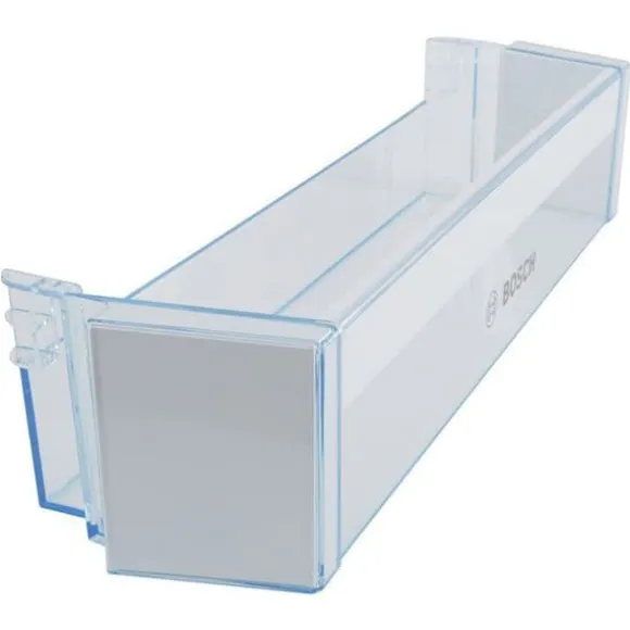 Denna vita flasghållare är utformad för BOSCH kylskåp. Den kräver egen montering. Kontrollera kompatibiliteten med din apparat före köp.