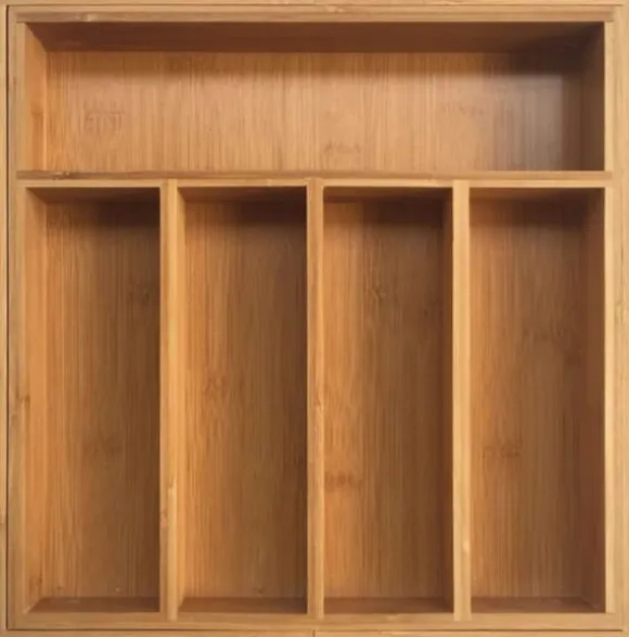 Den utdragbara bestickslådan i bambu är en elegant och ekologisk lösning som lägger till en naturlig accent och organisation till köket. Den är tillverkad av slitstark bambu och är mycket motståndskraftig mot fukt, vilket gör den idealisk för förvaring av bestick och små kökstillbehör. Bambu är ett miljövänligt, snabbväxande och förnybart material, vilket gör denna typ av skär också till ett ekologiskt ansvarsfullt val. Insatsen är utdragbar, vilket gör att den kan anpassas till olika lådstorlekar, vilket säkerställer maximal användning av utrymmet. Den är utrustad med flera fack som kan justeras, vilket gör det lättare att sortera bestick – som knivar, gafflar, skedar – och andra köksredskap, som skalare, teskedar eller saxar. Smala fack hjälper till att hålla ordning på saker och ting och förhindrar att innehållet förskjuts när lådan öppnas och stänger. Tack vare bambuns naturliga utseende passar insatsen perfekt till olika köksstilar – från modernt till klassiskt och rustikt. Insatsen är lätt att rengöra och underhålla, vilket gör den till ett bekvämt och praktiskt komplement till alla kök. Funktioner: Tillverkad av 100% naturligt bambuträ. 7 långa fack. Expanderbar på sidorna. Passar de flesta lådor i standardstorlek: 35 x 37 x 5 cm, utökade lådor: 55 x 37 x 5 cm.