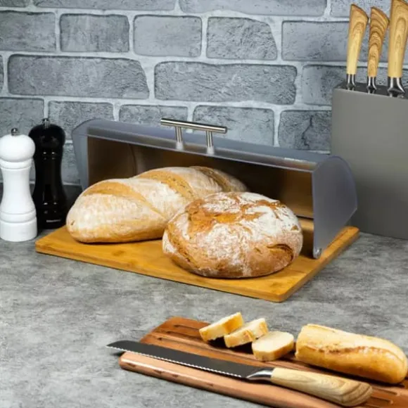 Ekologisk behållare för förvaring av bröd. Kropp gjord av bambuträ. Överdrag i matt akryl. Funktioner: – Materialen som används är ekologiska och hygieniska – Lätt att använda, ingen extra yta krävs för att öppna locket – Locket öppnas och stängs försiktigt – Lätt och solid konstruktion – Designad för förvaring av alla typer av bröd och munkar – Storlek: 39×28. 5×15 cm