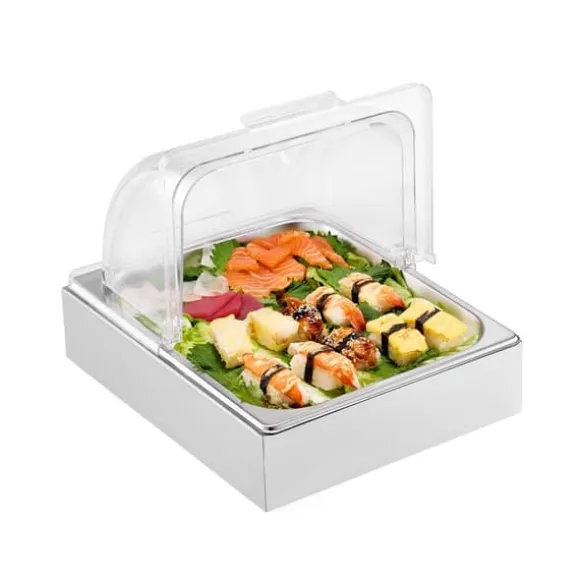- Högkvalitativt material: Matbrickan och vattenpannan i vår bänkskiva för matserveringsbehållare är tillverkade av livsmedelsklassat rostfritt stål av exceptionell kvalitet. De är avtagbara för enkel rengöring och återmontering, vilket garanterar långvarig användning.
