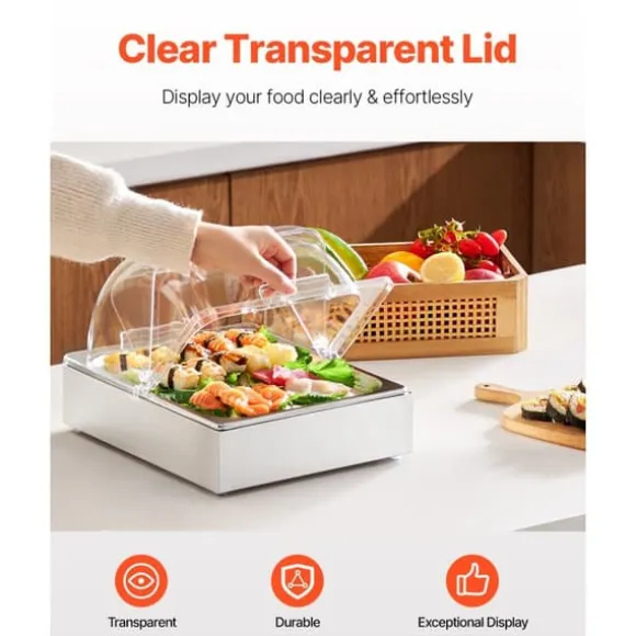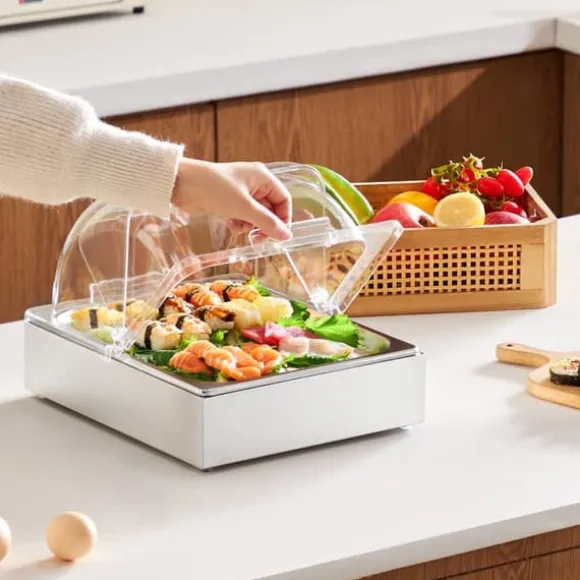 - Brett användningsområde: Vår kallmatsbufféserver är perfekt för alla miljöer, inomhus eller utomhus, inklusive familjemiddagar, fester, picknickar, grillar och camping. Den erbjuder överlägsen matkonservering och en vacker visning av maten.