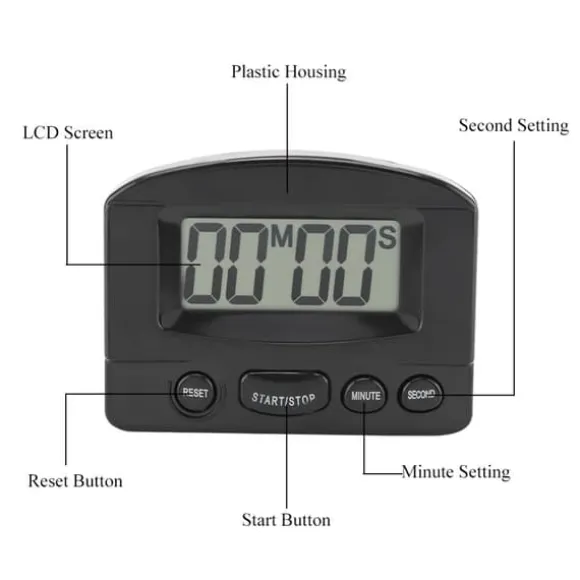 Välkommen till vår butik! Denna digitala timer erbjuder ett nedräkningsområde från 1 sekund till 99 minuter och 59 sekunder, vilket möjliggör flexibla tidsinställningar. Den har en stor LCD-skärm för tydlig och enkel avläsning och användning. Baksidan har ett inbyggt stativ för placering på plana ytor och en magnet för fästning på metallapparater som kylskåp, köksfläktar och mikrovågsugnar. Efter varje nedräkning återställs den automatiskt till din förinställda starttid för enkel återanvändning. När timern slutar påminner en 30-sekunders ljudsignal dig. Timern är helt ny, tillverkad av plast med en LCD-skärm och finns i vitt eller svart. Den mäter cirka 82 mm x 62 mm x 17 mm (3,2 tum x 2,4 tum x 0,7 tum), med en skärmstorlek på cirka 48 mm x 22 mm (1,9 tum x 0,9 tum) och väger cirka 57 g. Paketet innehåller en digital timer med ett AAA-batteri redan installerat. En skyddande film på skärmen skyddar den under frakt – ta bara bort den efter mottagandet. Nöjdhet: Våra kunder är vår högsta prioritet. Om du upptäcker några produktproblem efter att du mottagit varorna, såsom skador eller felaktig mängd varor, vänligen kontakta säljaren omedelbart. Vi gör vårt bästa för att ge dig tillfredsställande kundservice.