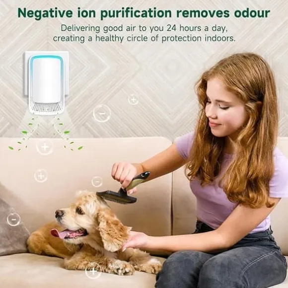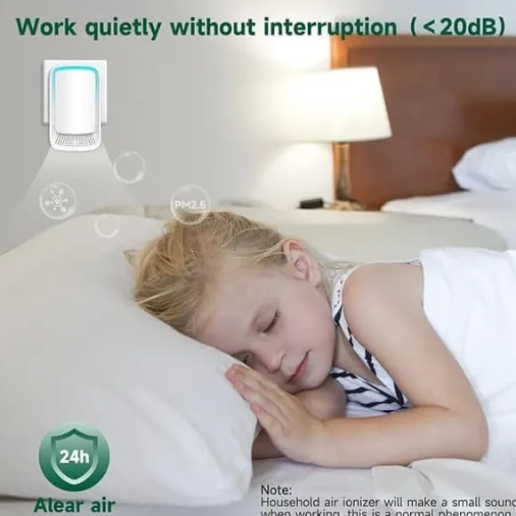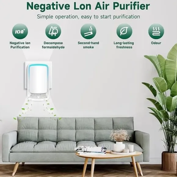 Denna plug-in luftrenare genererar ett stort antal negativa joner som fäster vid luftburna partiklar som damm, pollen, rök och lukt. Dessa föroreningar tvingas snabbt ner till marken, vilket effektivt renar luften och skapar en fräschare inomhusmiljö.