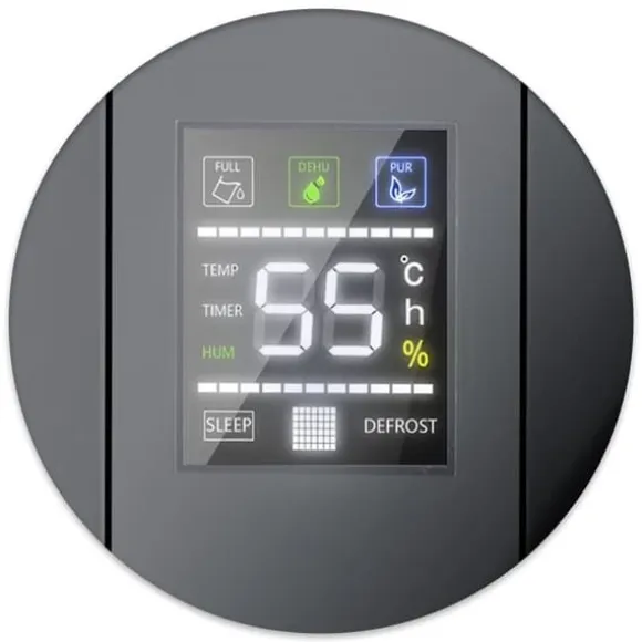 - Smart panel: Digital display med 24-timmars timer och kontroll över alla funktioner.