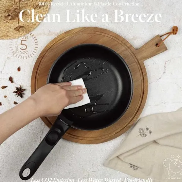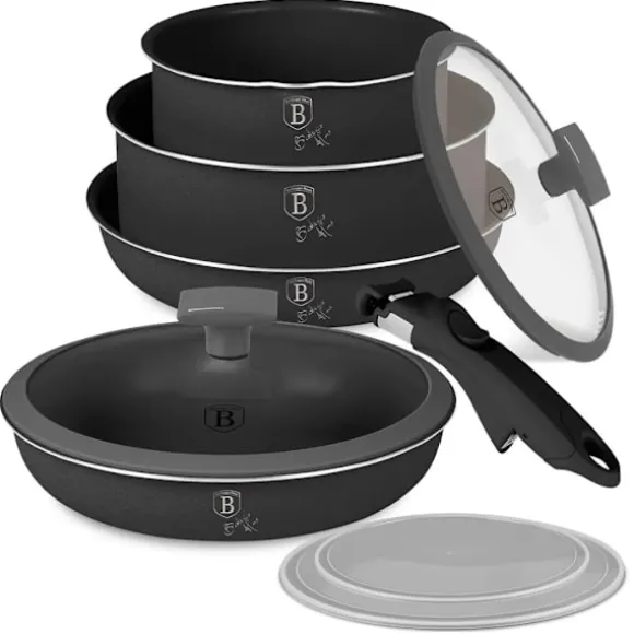 Varje gryta och stekpanna är tillverkad av högkvalitativt aluminium och har en tre-lagers titanbeläggning som säkerställer att maten inte fastnar. De avtagbara handtagen gör det enkelt att förvara dem och ger dig möjlighet att använda dem i ugnen utan att oroa dig för att bränna dig. Dessutom är dessa redskap lämpliga för alla typer av spisar, inklusive induktionshällar, vilket gör dem extremt mångsidiga.