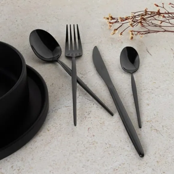 24-delat bestickset från BERLINGER HAUS av högblankt polerat rostfritt stål i svart. Uppsättningen inkluderar: Tabellkniv: 6 st.